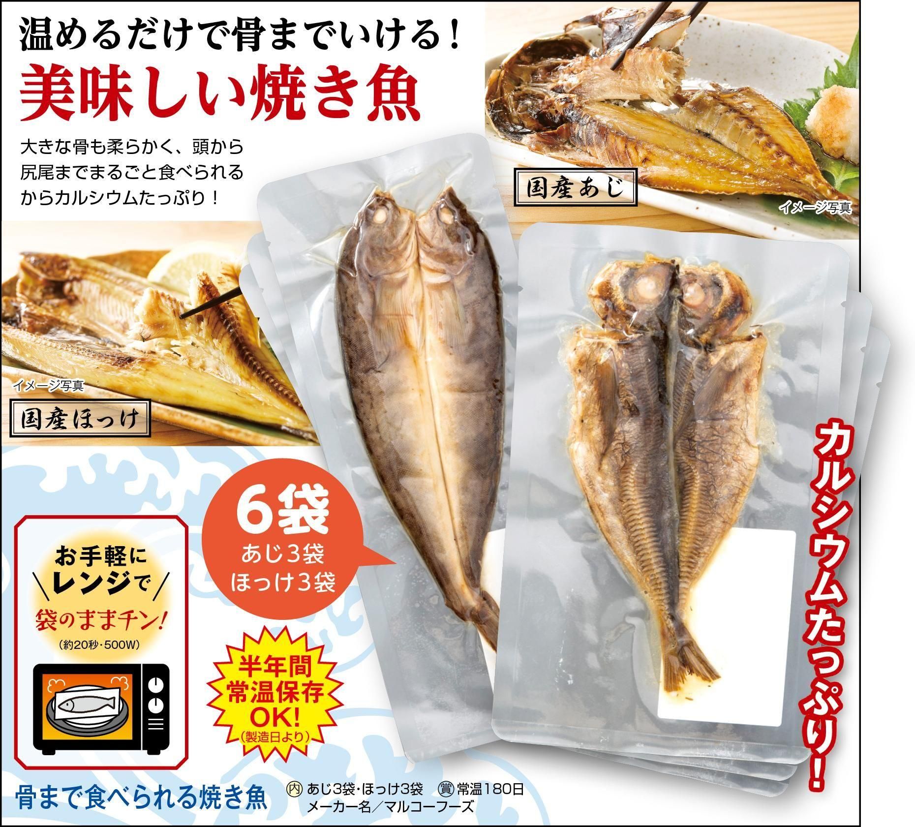 > 骨まで食べられる焼き魚 あじ3袋・ほっけ3袋