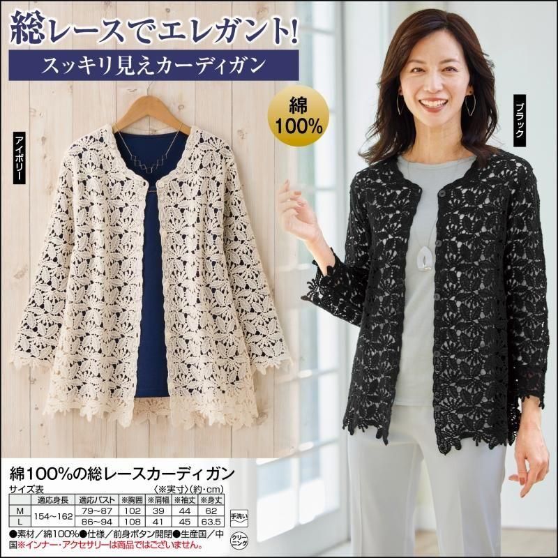 綿100%の総レースカーディガン