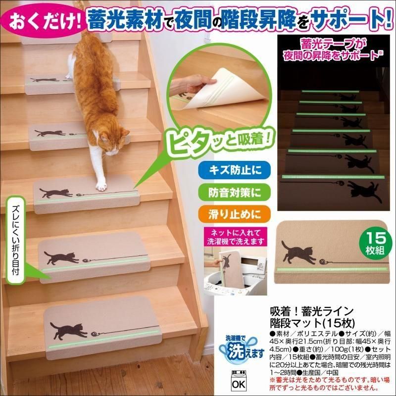 > 吸着!蓄光ライン階段マット(15枚)